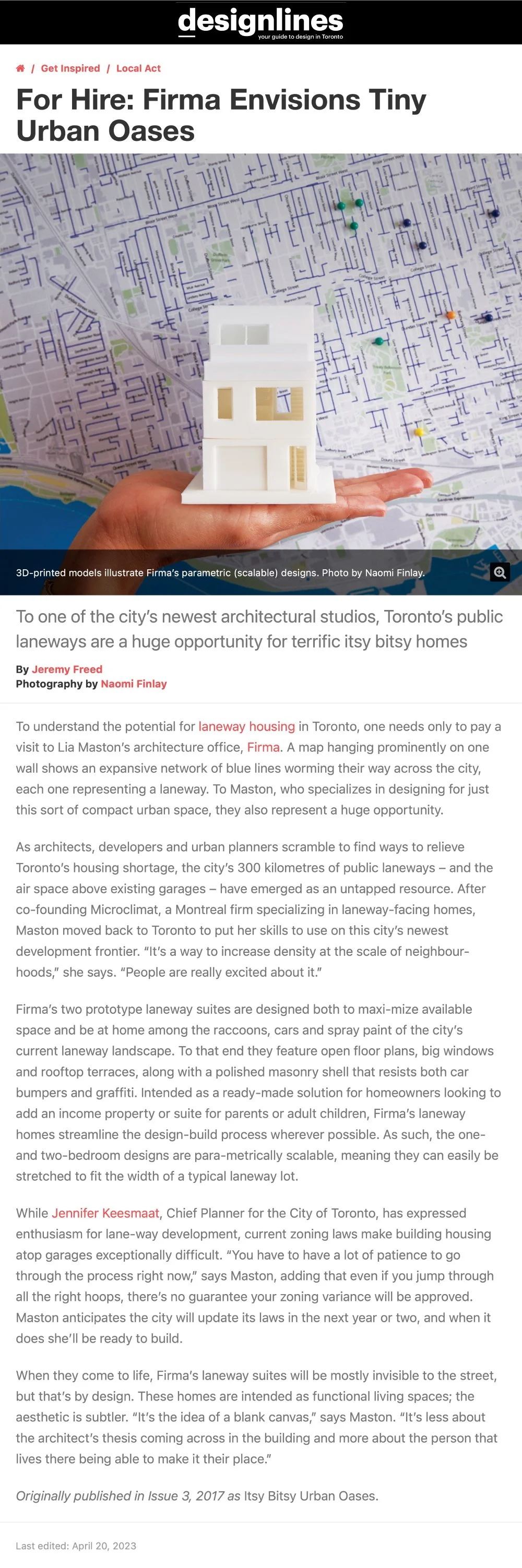 Designlines Cover Story Firma Model HomeLink to the original article ← Canadian Architect Theatre at Nathan Phillips Square NOW Life In The Laneway →